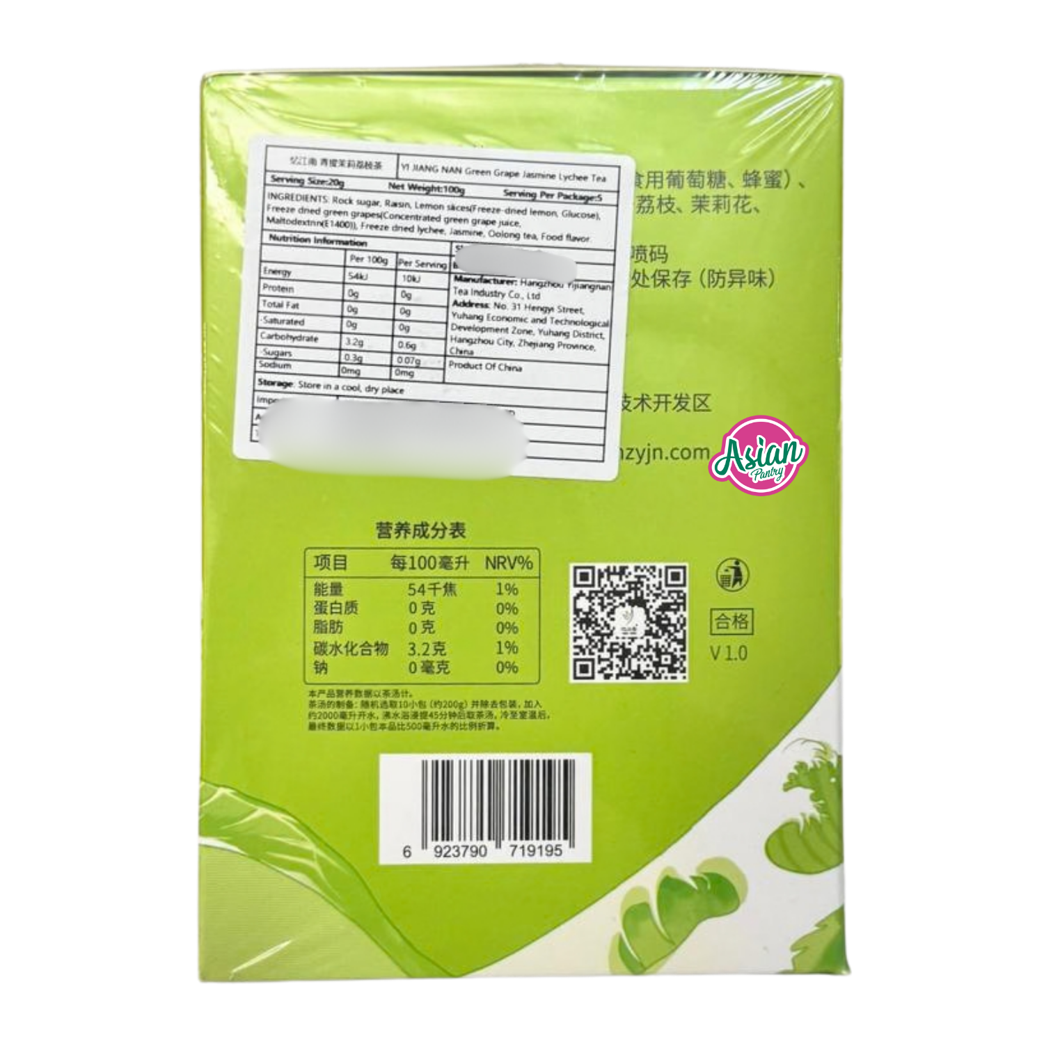 A fragrant fruit tea blend combining green grape, jasmine, and lychee flavours. Light, aromatic, and enjoyable served hot or cold for a refreshing drink experience. Country of Origin: China Shop online for your favourite Asian groceries. Asian Pantry is open 24/7 with low prices everyday.
