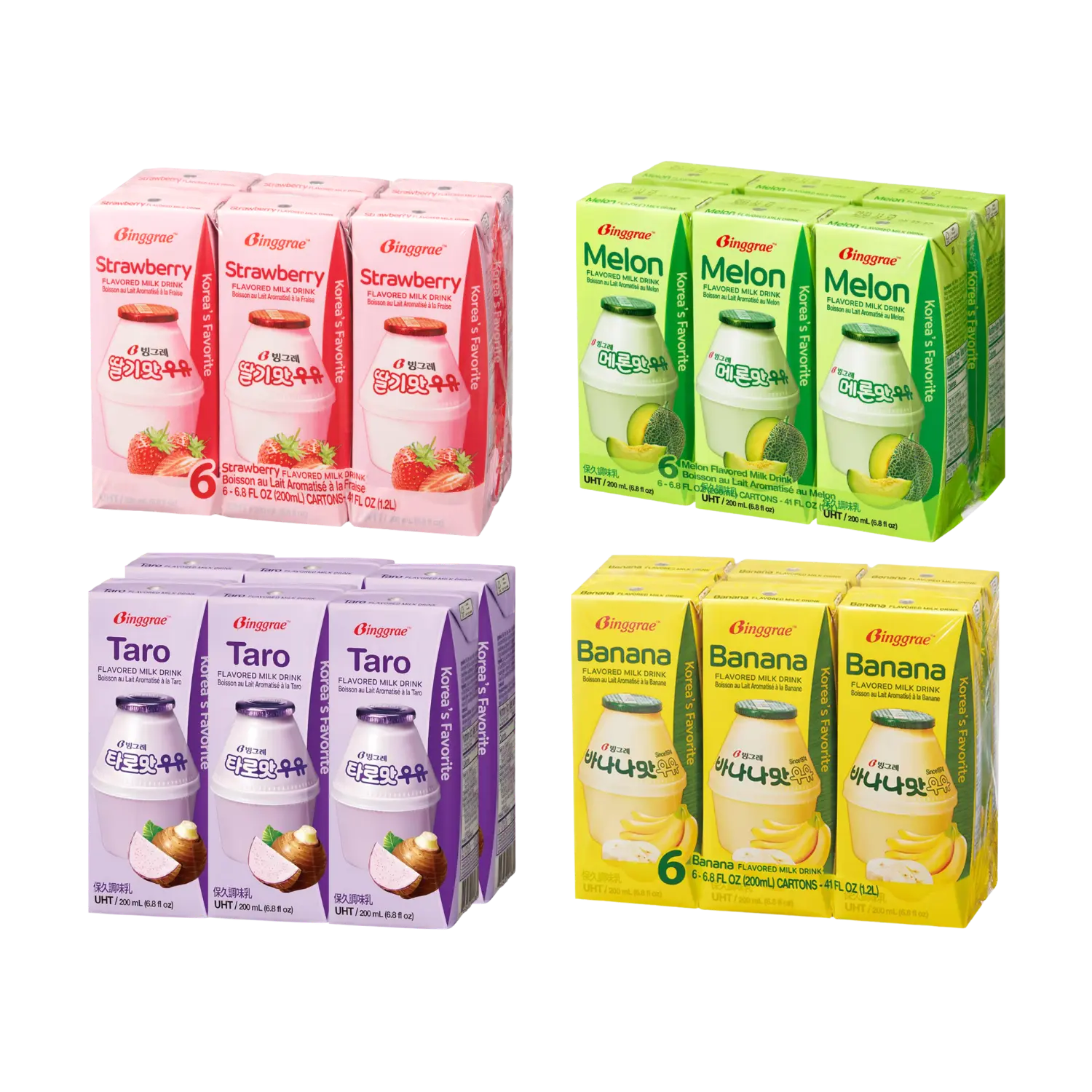 Indulge in creamy fun with our Binggrae Flavoured Milk 6-Pack Bundle ๐ฅ๐! Youโll get four convenient 6-packs (6 ร 200 ml each) of these delicious flavours: