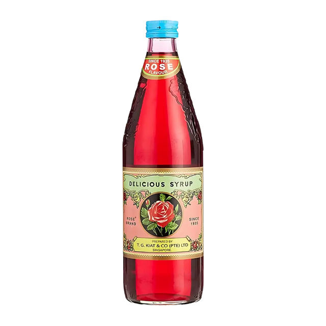 Sirap rasa mawar premium, diperbuat daripada ekstrak mawar semulajadi yang dipilih khas untuk mengeluarkan nota bunga yang menyenangkan.