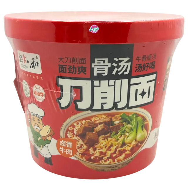 Enjoy rich, comforting braised beef broth paired with thick, hand-sliced style noodles that stay chewy and satisfying. Ready in minutes, this bowl delivers a hearty, homestyle flavour perfect for quick lunches or late-night cravings.
