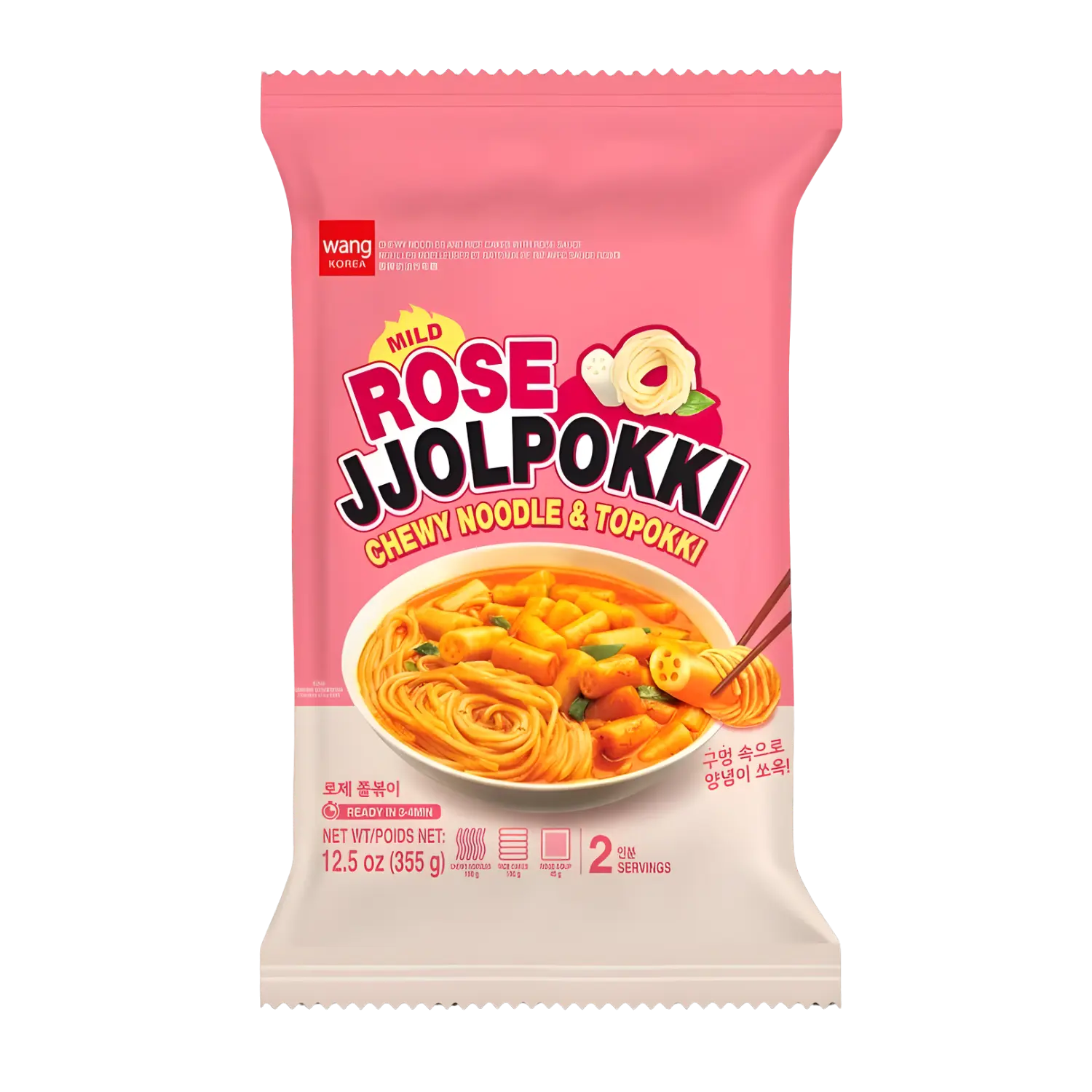 Wang Korea Rose Jjolpokki Chewy Noodle & Tteokbokki Mild 355g