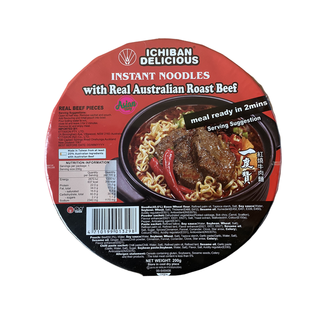 Ichiban delicious instant cup noodles in roast beef flavour is one of our bestsellers. Made from 100% Australian roast beef, it's quick and easy to prepare. Just add hot water for a hearty and delcious Taiwanese noodle meal brought to you by the Wei Lih brand.