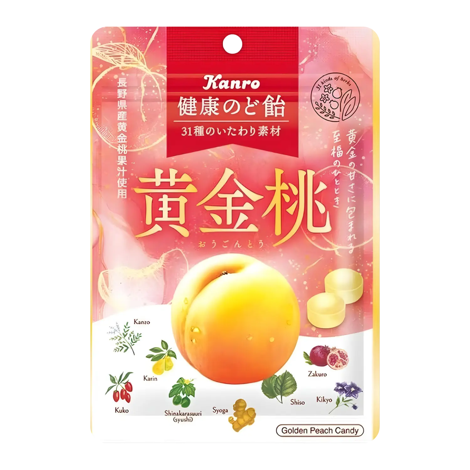 Kanro Healthy Throat Candy Golden Peach 80g